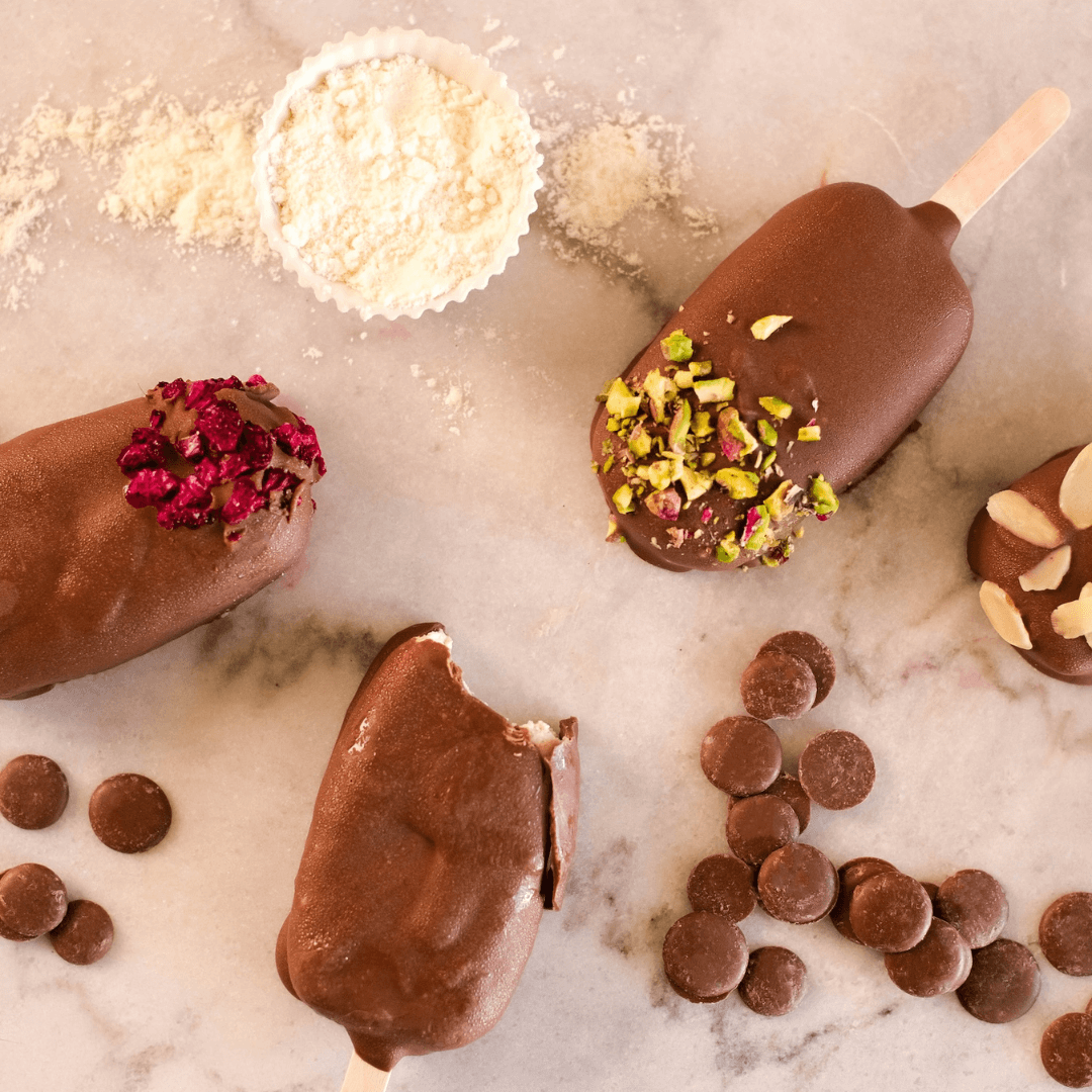 Creamy, dreamy, and dipped in glossy chocolate, these healthy cashew & collagen ‘magnums’ are the ultimate homemade treat. Made with soaked cashews, Krumbled Vanilla Collagen Peptides, and our no added sugar milk chocolate, they’re indulgent yet nourishing, with a silky texture and satisfying crunch. A wholesome dessert that feels luxe but is secretly good for you.