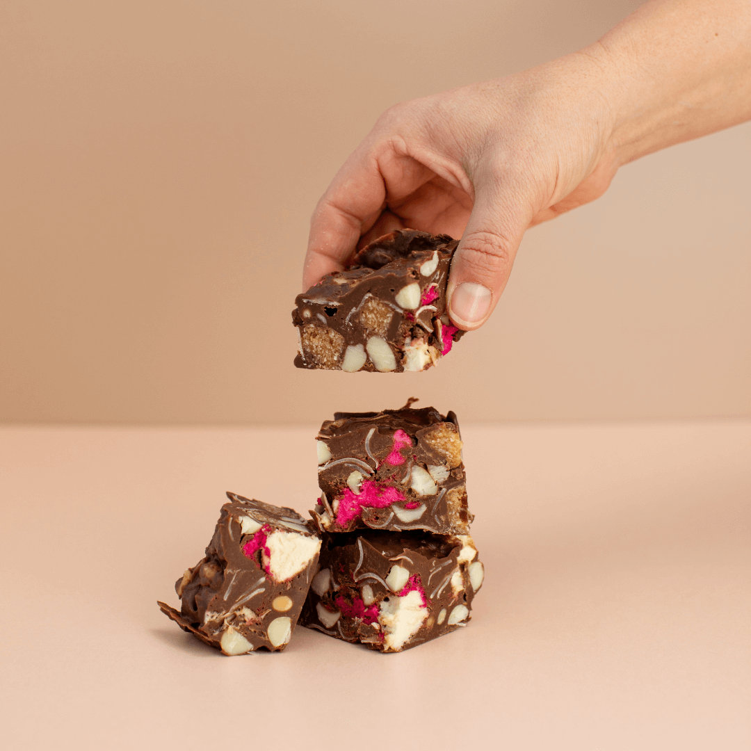 We took your classic rocky road and gave it the Krumbled twist - think indulgent milk chocolate, marshmallows, and our iconic Choc Cherry Beauty Bites. It’s everything you love about rocky road, with added skin and gut health perks.