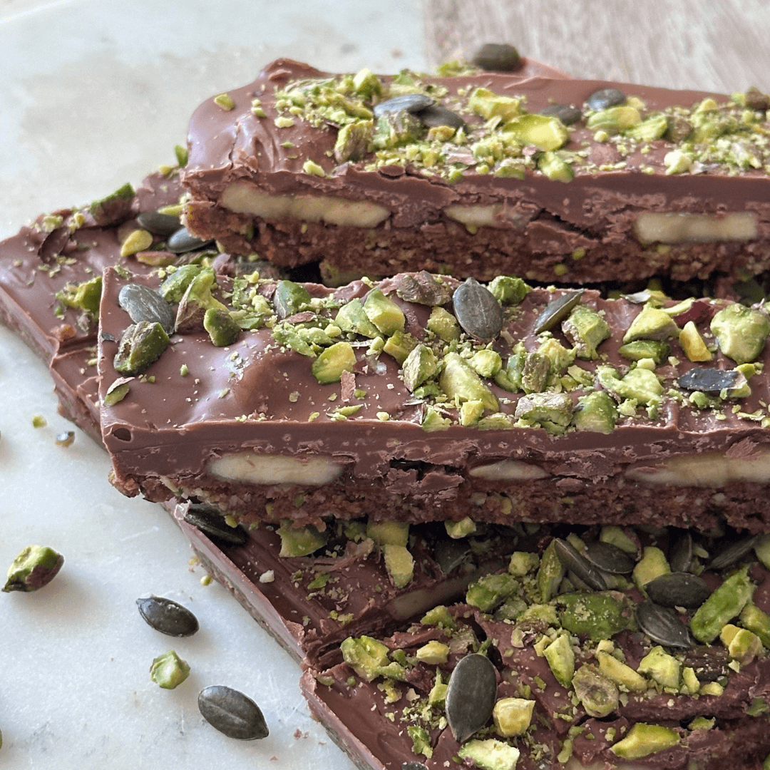 Plus, the banana and honey add a natural sweetness that pairs perfectly with the creamy chocolate layer and the crunch of pistachios.