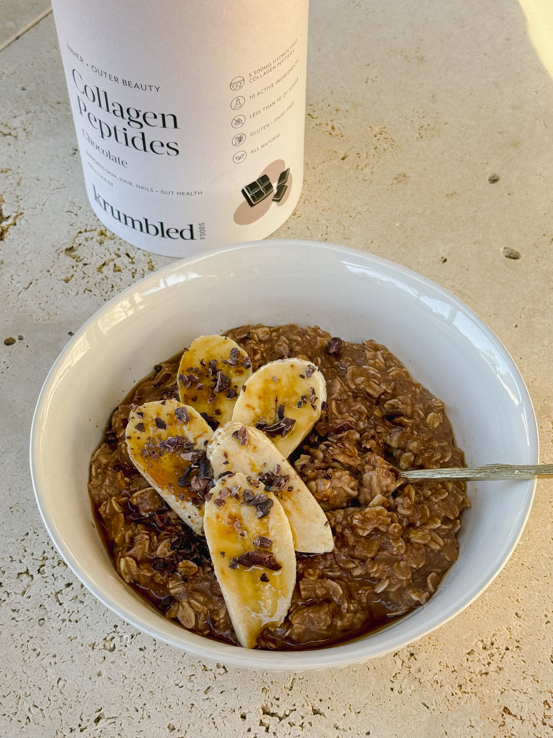 Level up your breakfast routine with this dreamy, collagen infused Choc Porridge recipe by our social girlie, @theconniediaries. Make this simple, glow-inducing porridge of a morning, or even the night before, to enjoy a delicious and nutritious chocolate infused treat come morning.