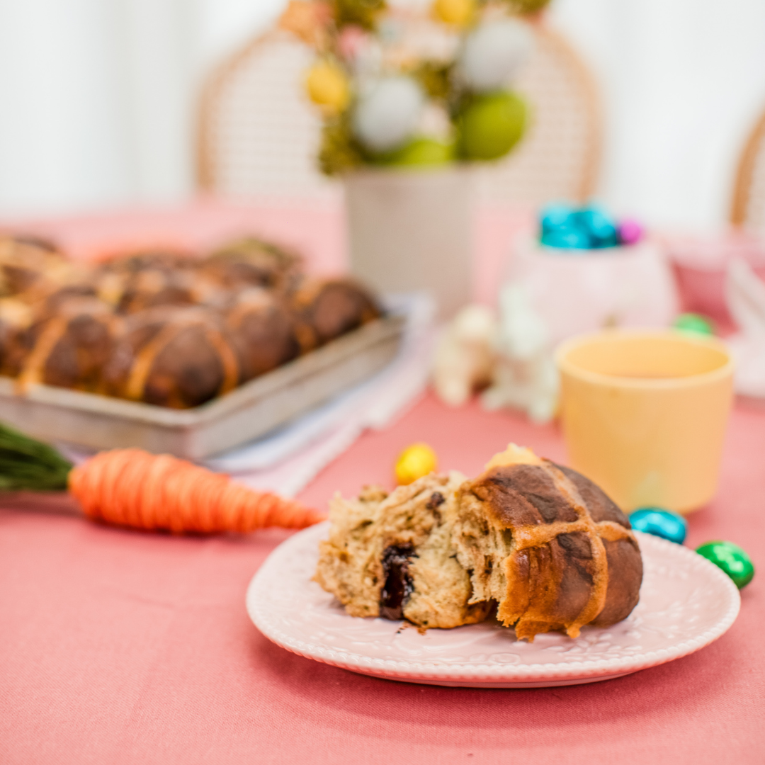 There’s nothing quite like the smell of freshly baked hot cross buns wafting through the kitchen at Easter time, and this version might even become your new favourite. These Milk Choc Hot Cross Buns are a wholesome twist on a classic, made with soft, spiced dough and sweetened naturally with dates and maple syrup. A little dollop of butter and you're in easter heaven.