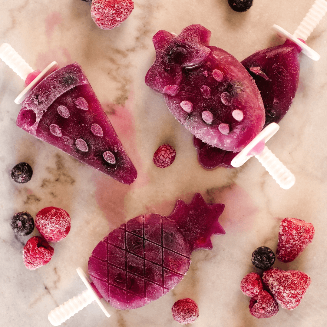 Pour the mixture into ice block molds. Drop in a few extra fresh berries for a fun, textured look.