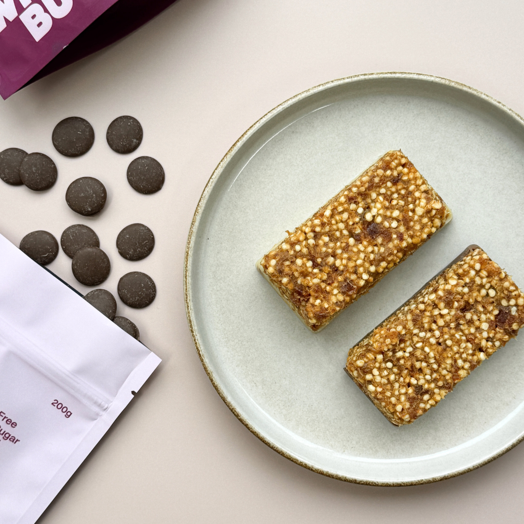 These No-Bake Choc Quinoa Bars are a game changer. Naturally sweetened with Medjool dates, they’re loaded with crunchy puffed quinoa and topped with a silky layer of our No Added Sugar Milk Choc Buttons.