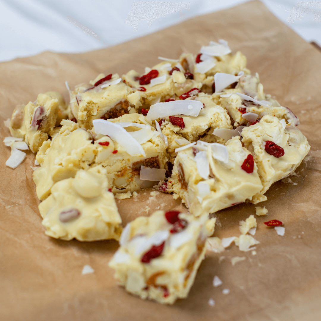 This is rocky road reimagined. Think creamy no added sugar white chocolate, toasted coconut, and bursts of berry from our cult-favourite White Choc Raspberry Beauty Bites. It’s the kind of treat you’ll want to keep hidden in the fridge just for you.