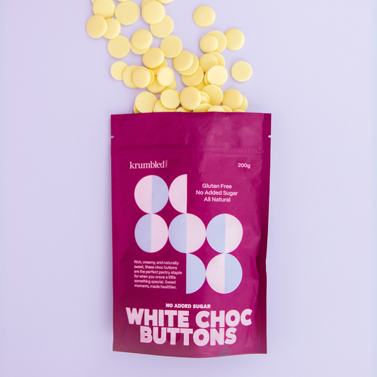 • 200g Krumbled Foods No Added Sugar White Choc Buttons