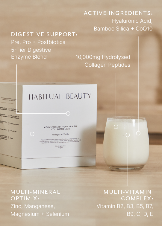 The Advanced Skin + Gut Health Collagen Elixir can be consumed daily, morning or evening.