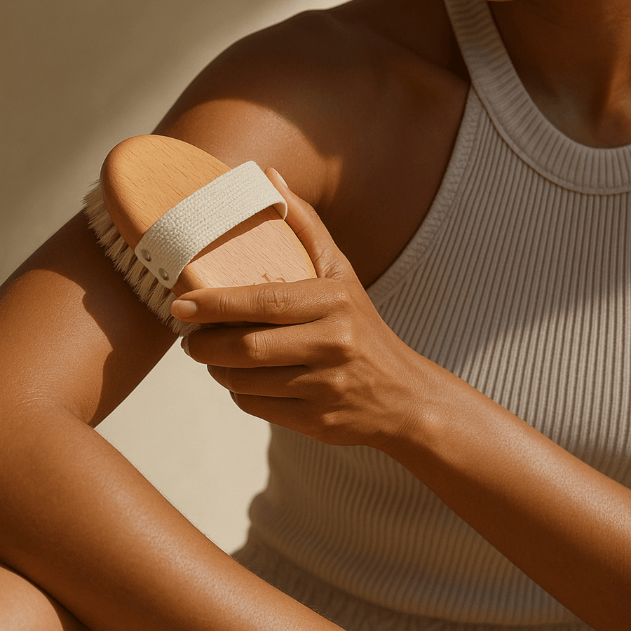 Use on dry skin before showering. Start at your feet and brush upwards in long, sweeping strokes towards your heart. Be gentle around sensitive areas and don't brush over open wounds. Follow with a hydrating body oil or lotion.
