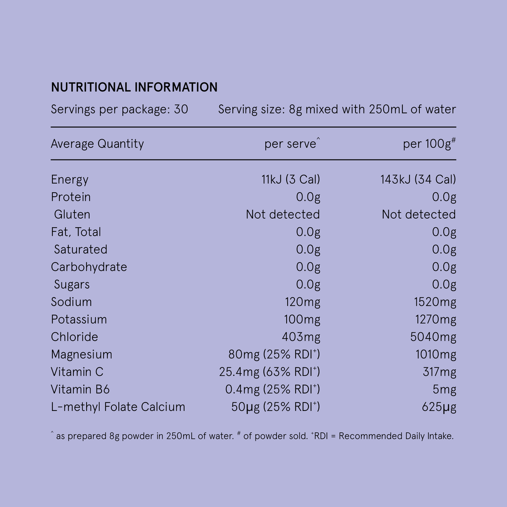 We have also included Methyl-Folate, Vitamin B6 and Vitamin C in our formulation for a number of reasons. Firstly, we must stress that Hydramama is not designed to replace your prenatal vitamin/folic acid. We have included these vitamins to support your vitamin intake, in particular if you are experiencing extreme vomiting. Vitamin B6 has been shown to potentially help to alleviate symptoms of vomiting. It is important to note that the effectiveness of these drinks will vary from person to person, and to always consult your health care team.