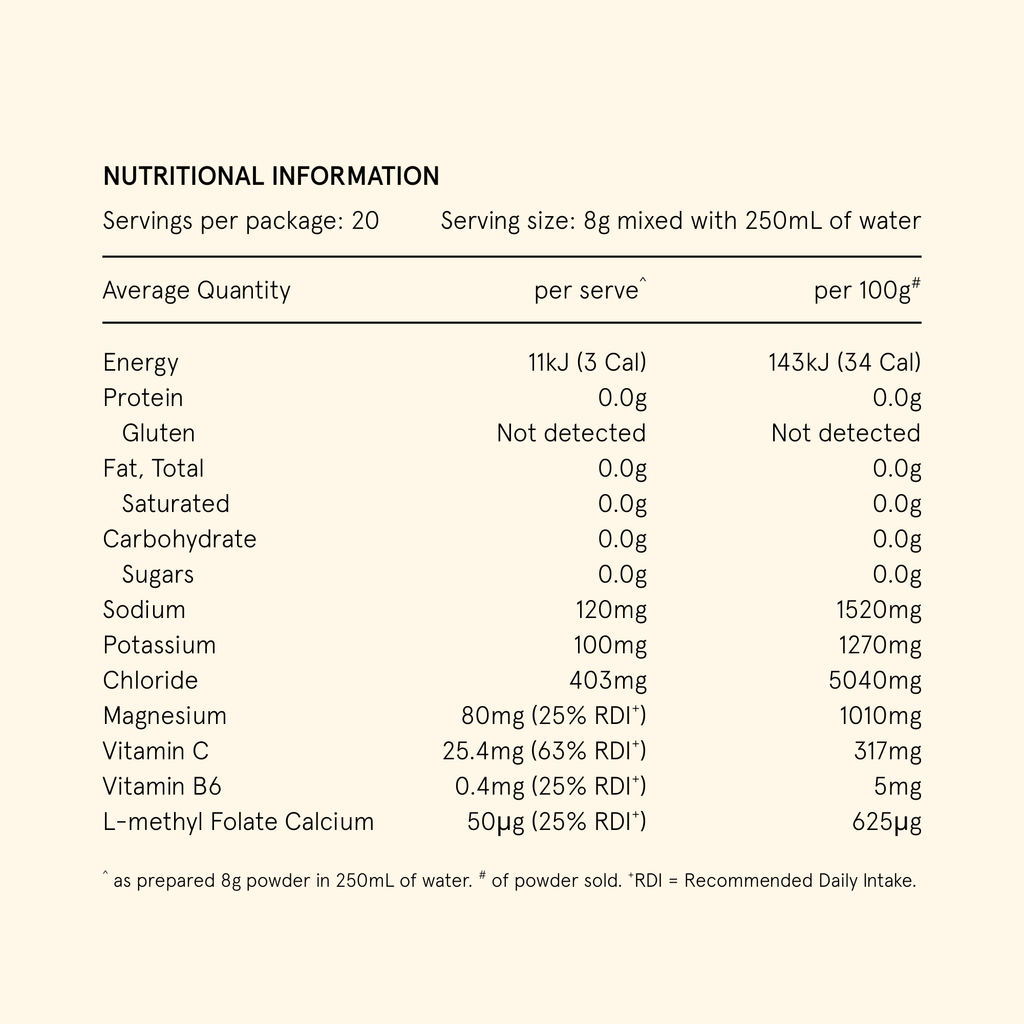 We have also included Methyl-Folate, Vitamin B6 and Vitamin C in our formulation for a number of reasons. Firstly, we must stress that Hydramama is not designed to replace your prenatal vitamin/folic acid. We have included these vitamins to support your vitamin intake, in particular if you are experiencing extreme vomiting. Vitamin B6 has been shown to potentially help to alleviate symptoms of vomiting. It is important to note that the effectiveness of these drinks will vary from person to person, and to always consult your health care team.